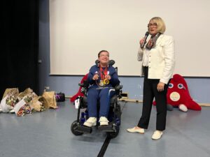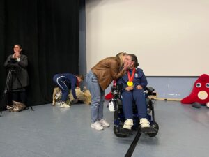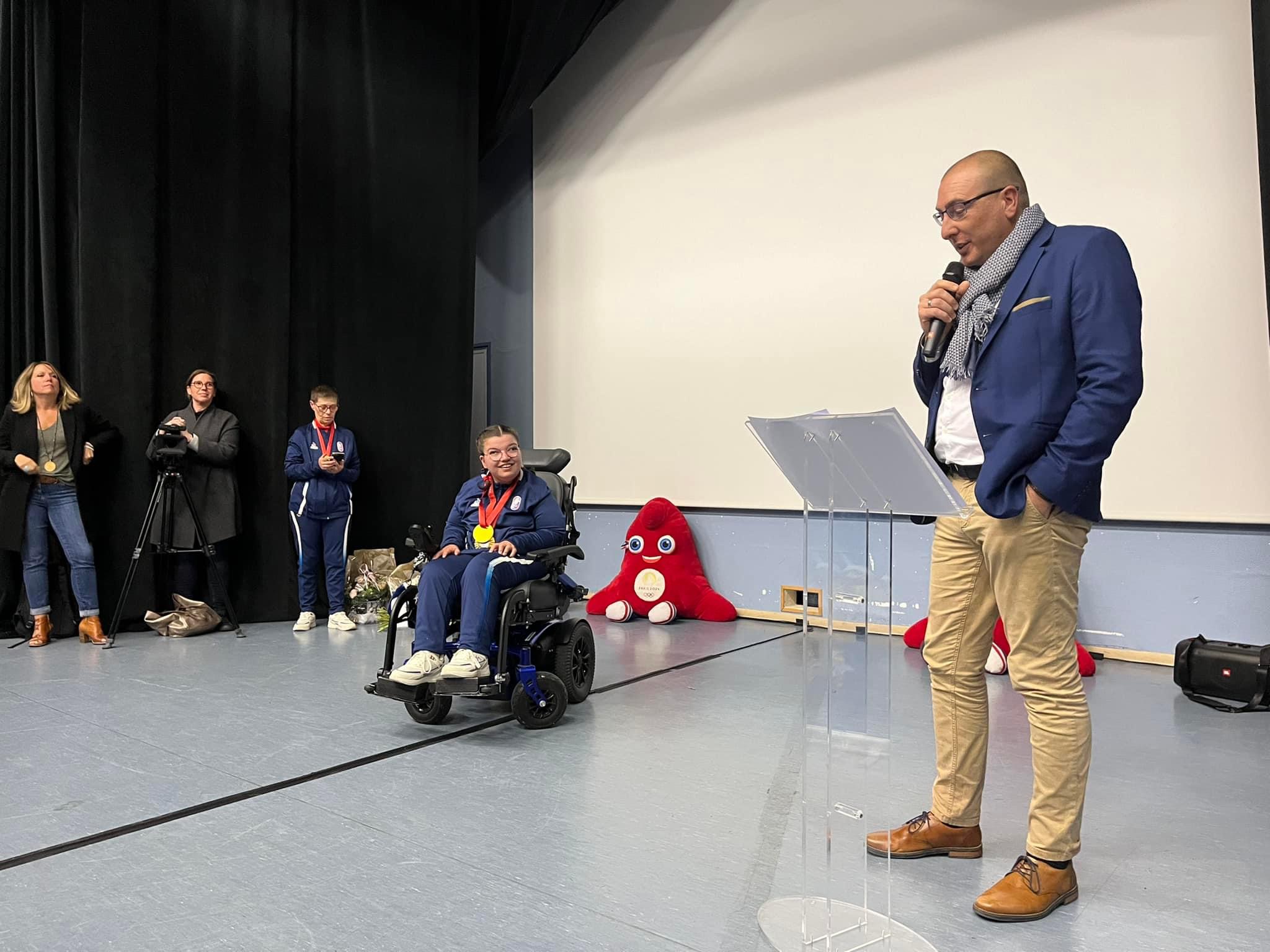 La cérémonie avait lieu à La Ruche à Verneuil d’Avre et d’Iton où elle s’entraîne depuis un an et demi. Entourée de sa famille d’accueil et des professionnels de santé qui l’accompagnent quotidiennement, Aurélie Aubert, a été ovationnée par le public en présence.