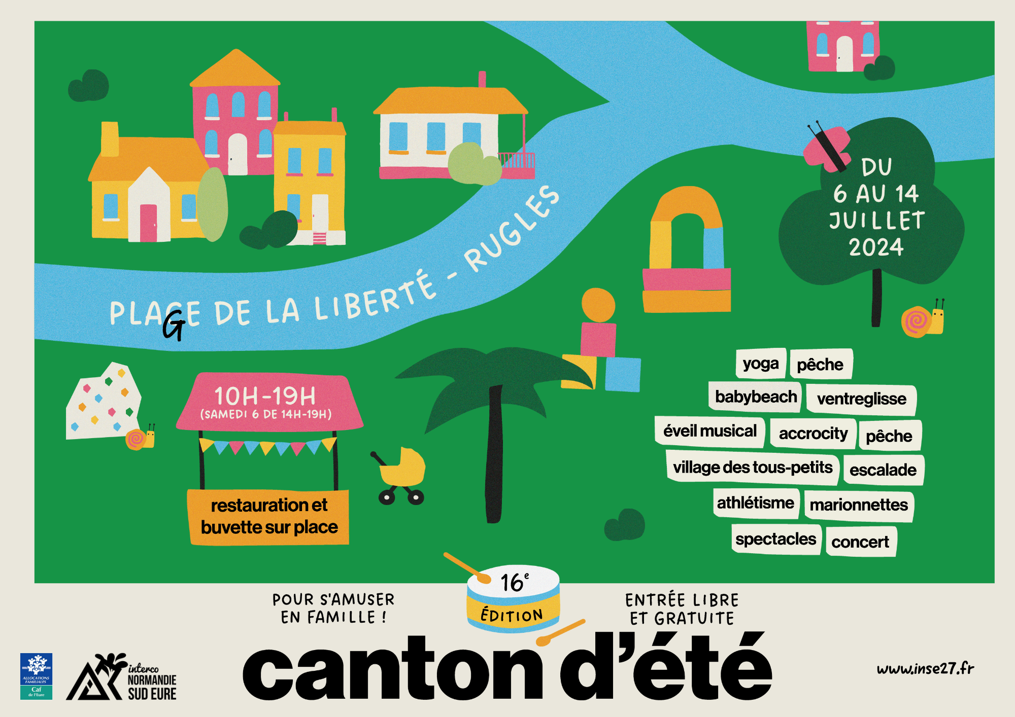 Le Canton d’été, un des événements phares de l’Interco Normandie Sud Eure, est de retour pour sa 16e édition cet été du samedi 6 juillet au dimanche 14 juillet 2024 à Rugles. Depuis sa création en 2008, le Canton d’été a pour vocation d’offrir à nos familles un avant-goût des vacances estivales, particulièrement à ceux qui n’ont pas la chance de partir, en proposant un éventail d’activités culturelles, sportives et de loisirs.