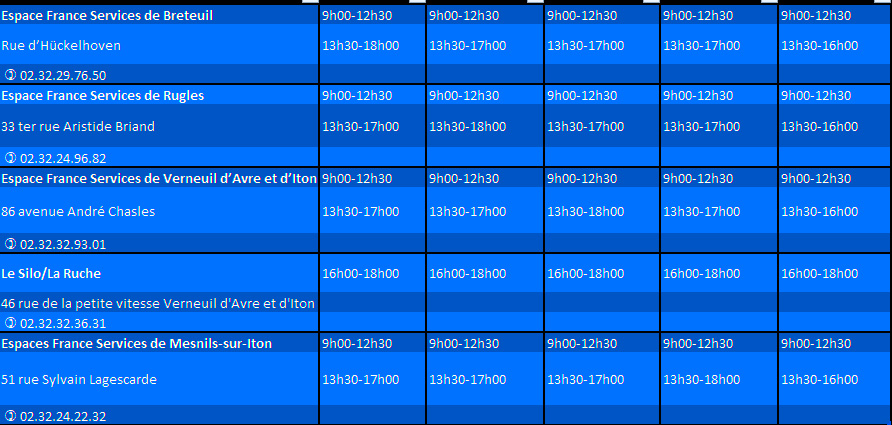 Coordonnées et horaires d’ouverture des structures :