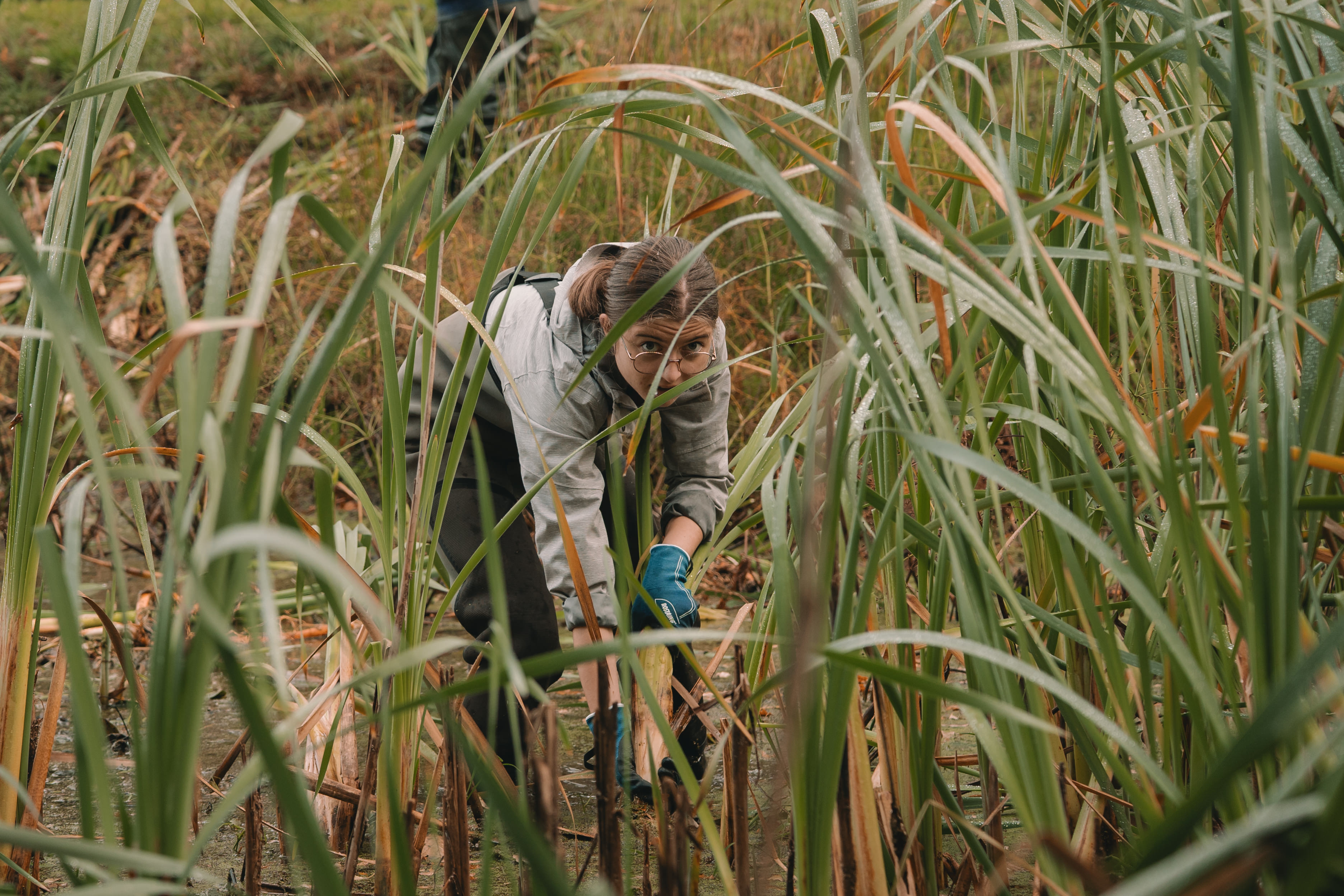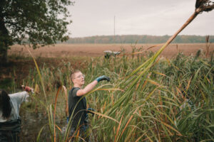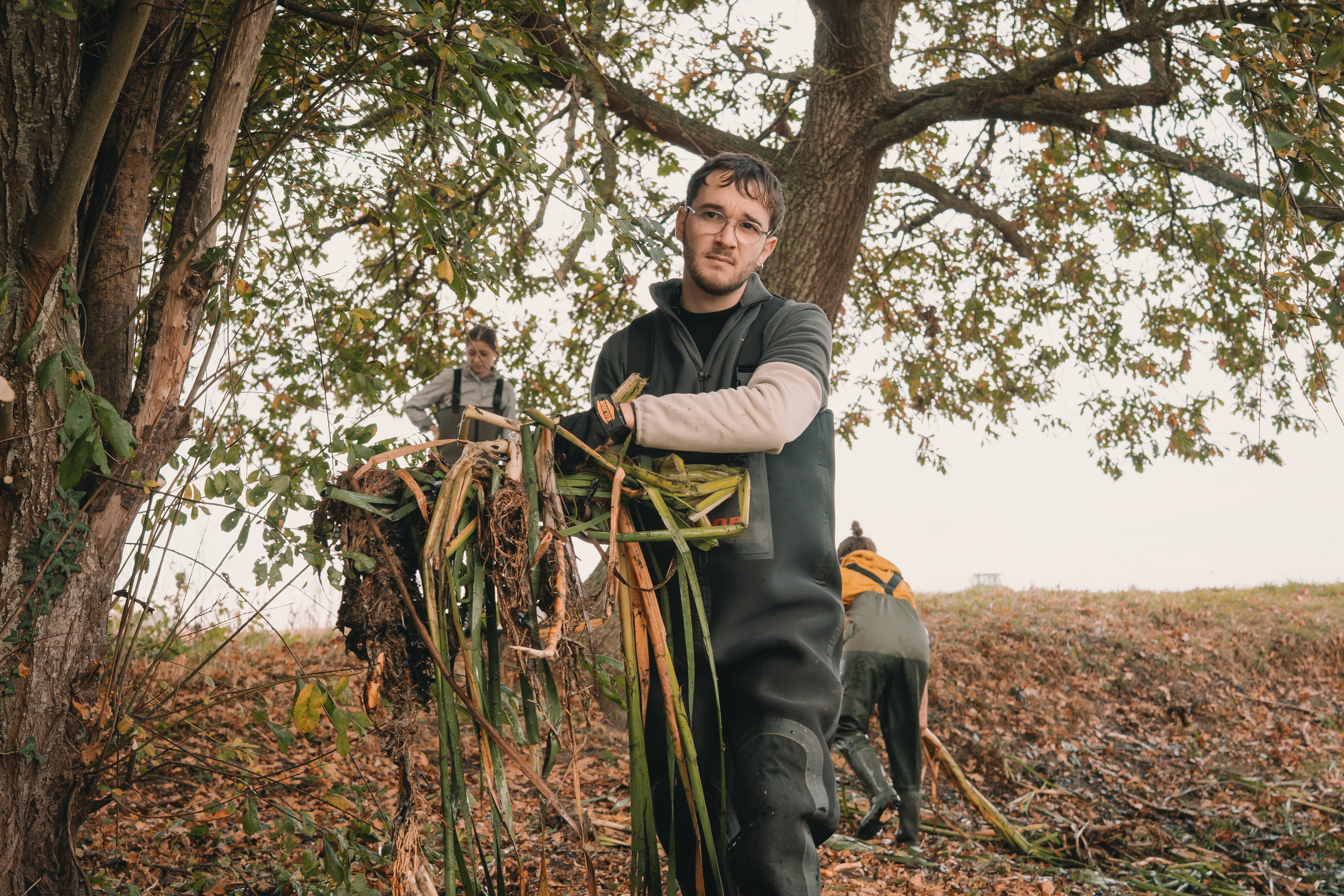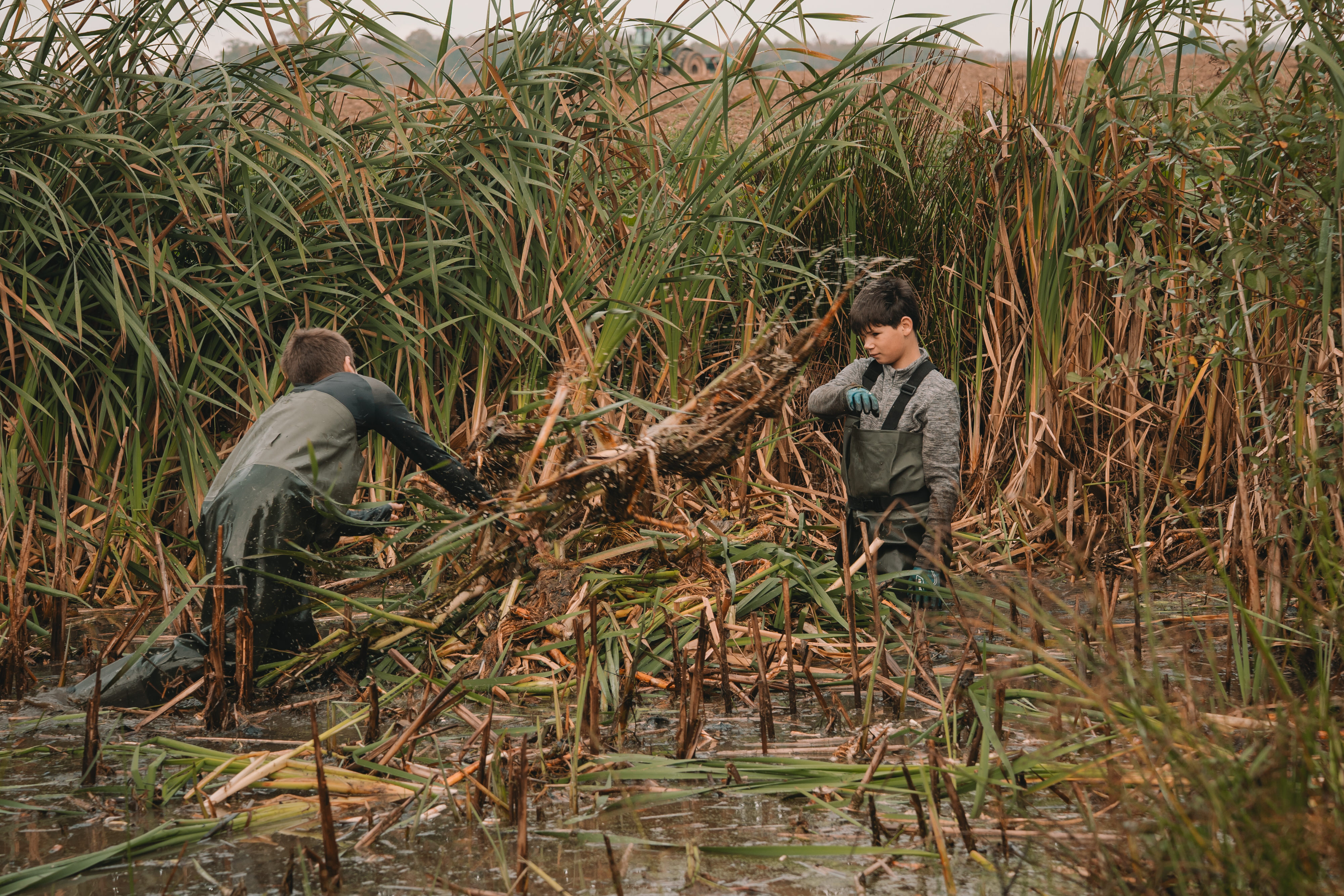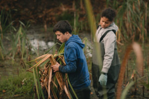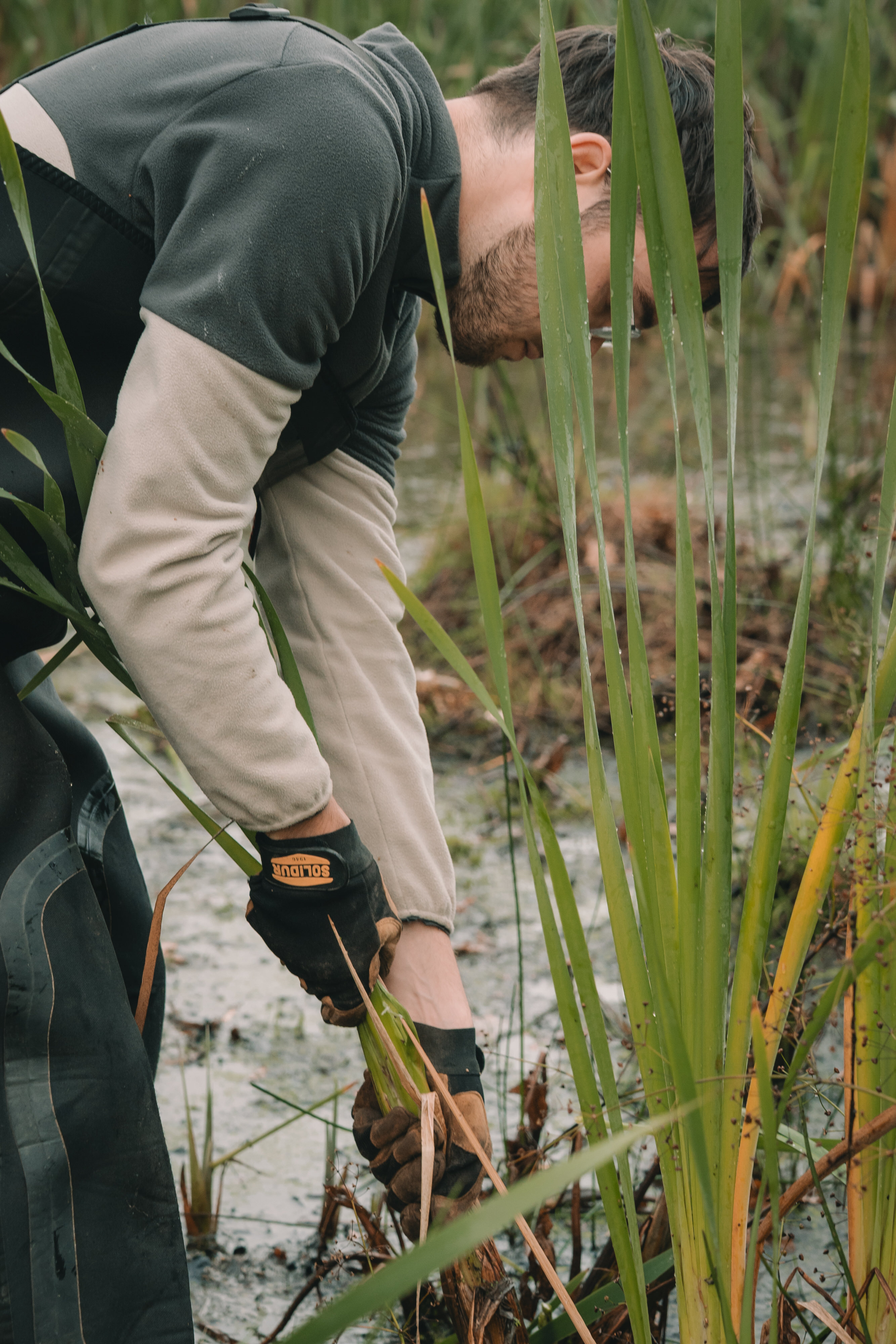 Arrachage de roseaux envahissants, pour redonner de l’espace aux autres espèces végétales ;