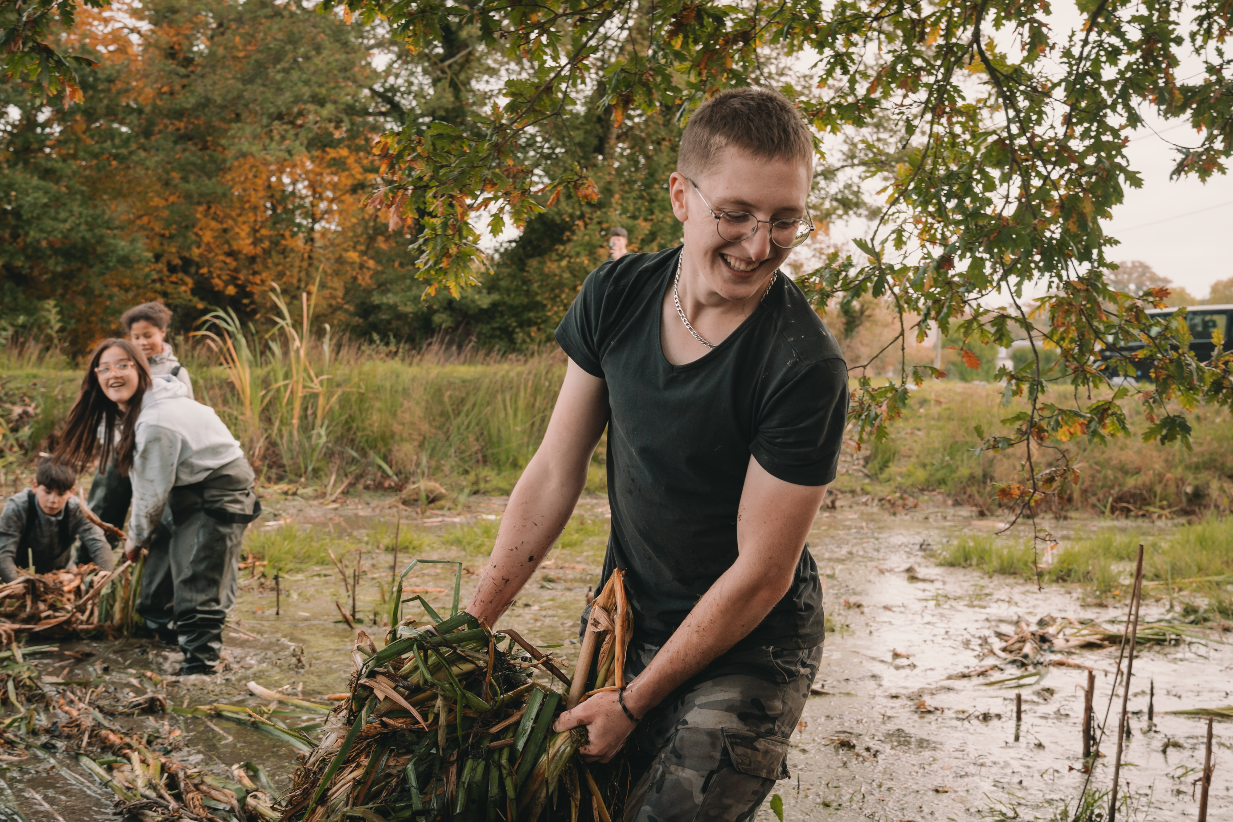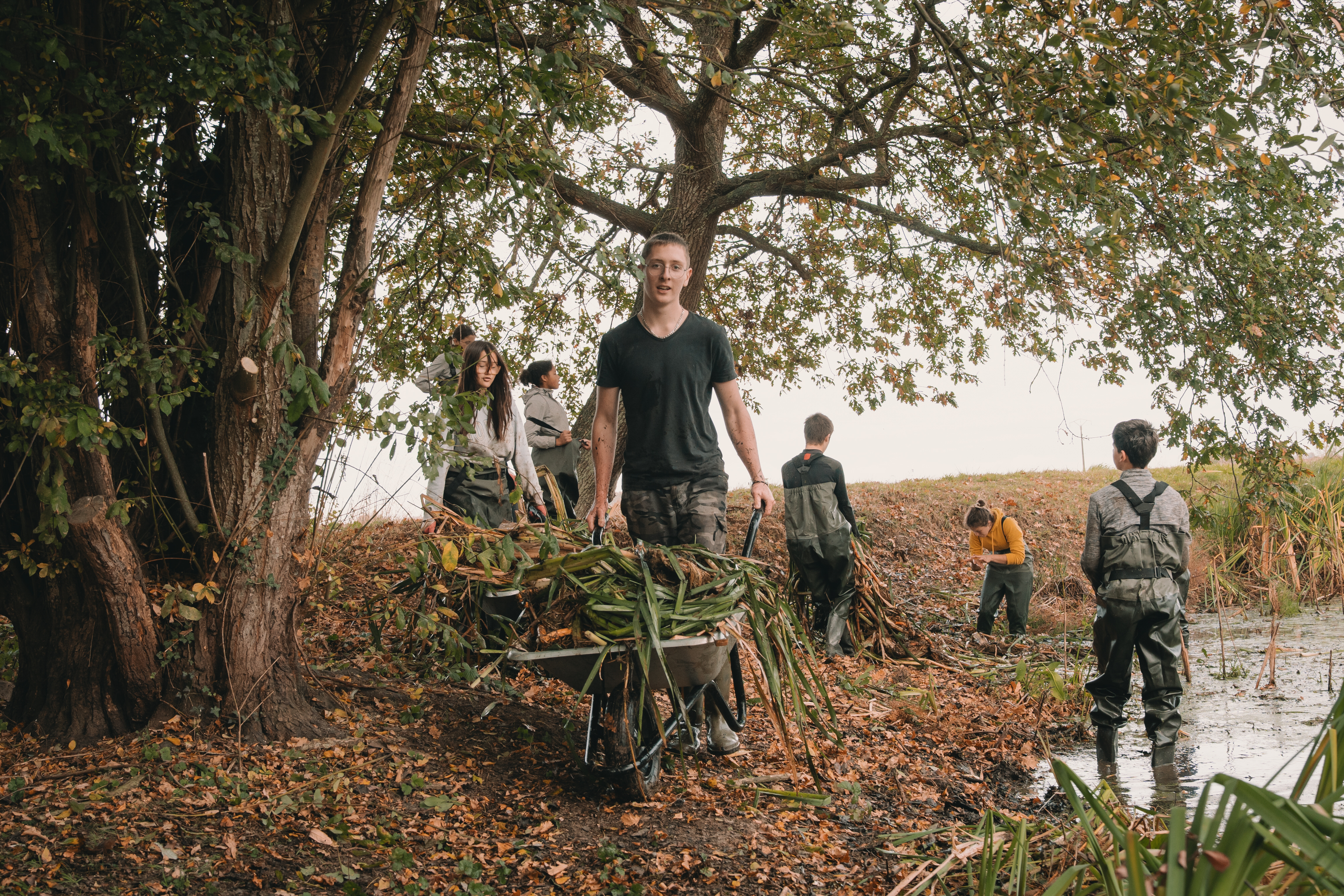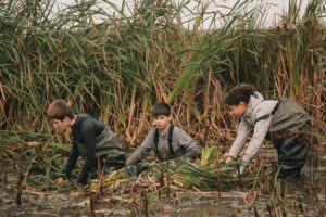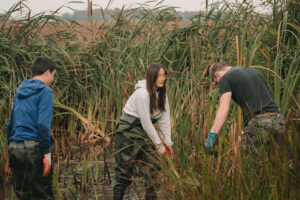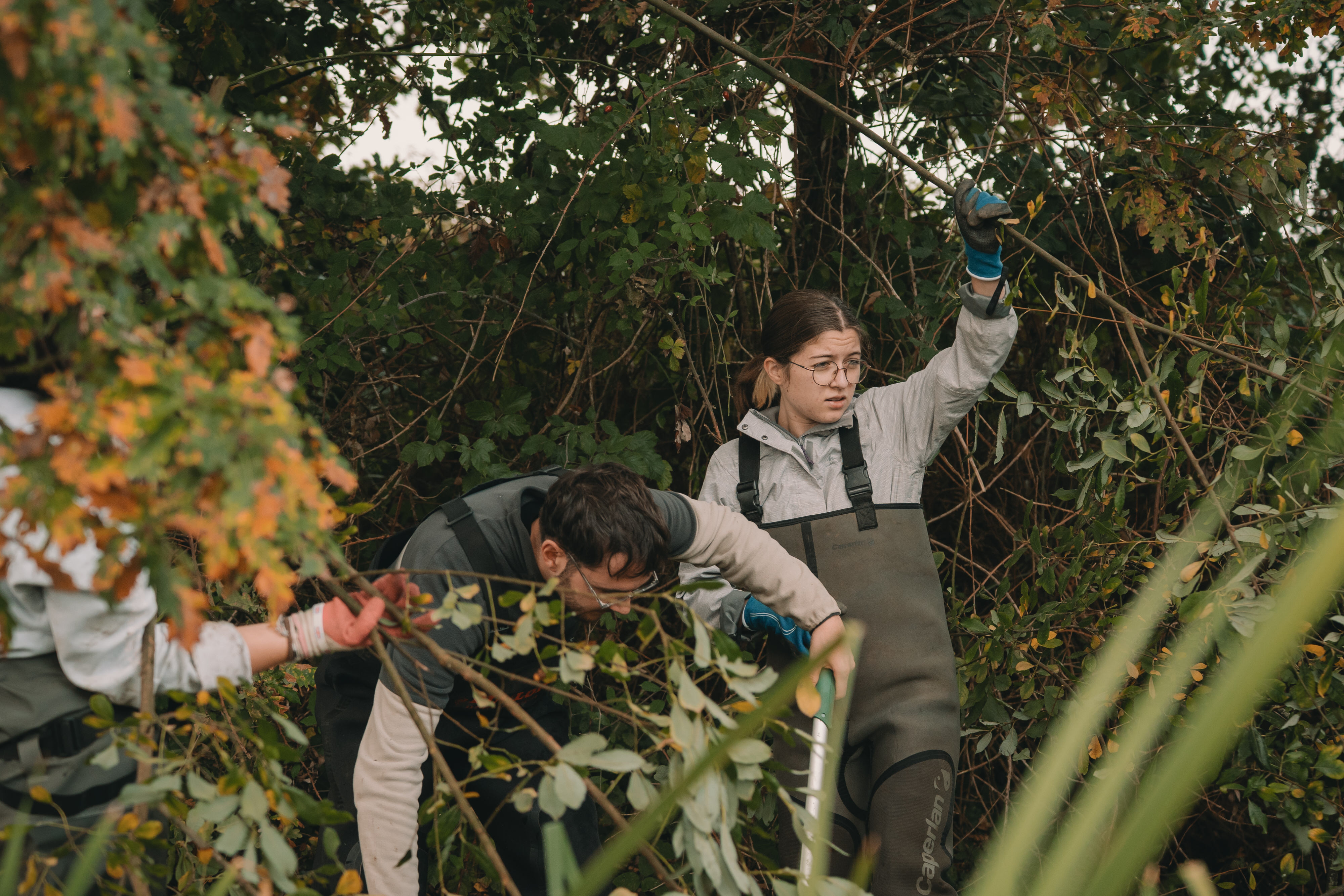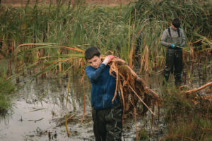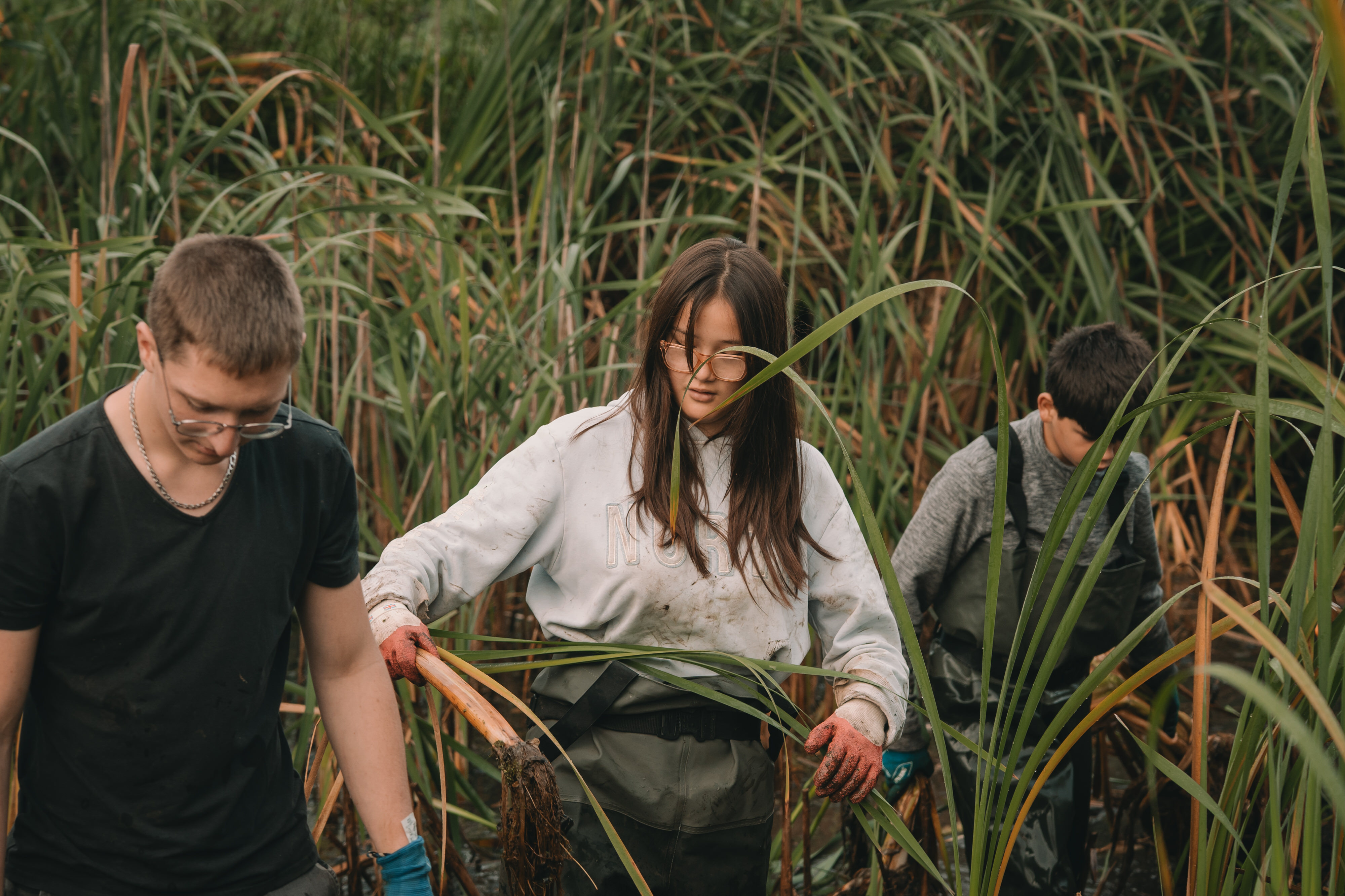 Arrachage de roseaux envahissants, pour redonner de l’espace aux autres espèces végétales ;
