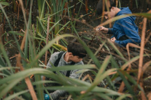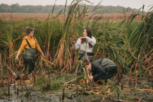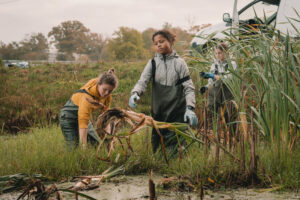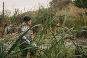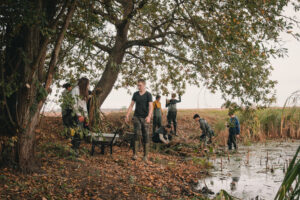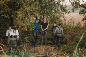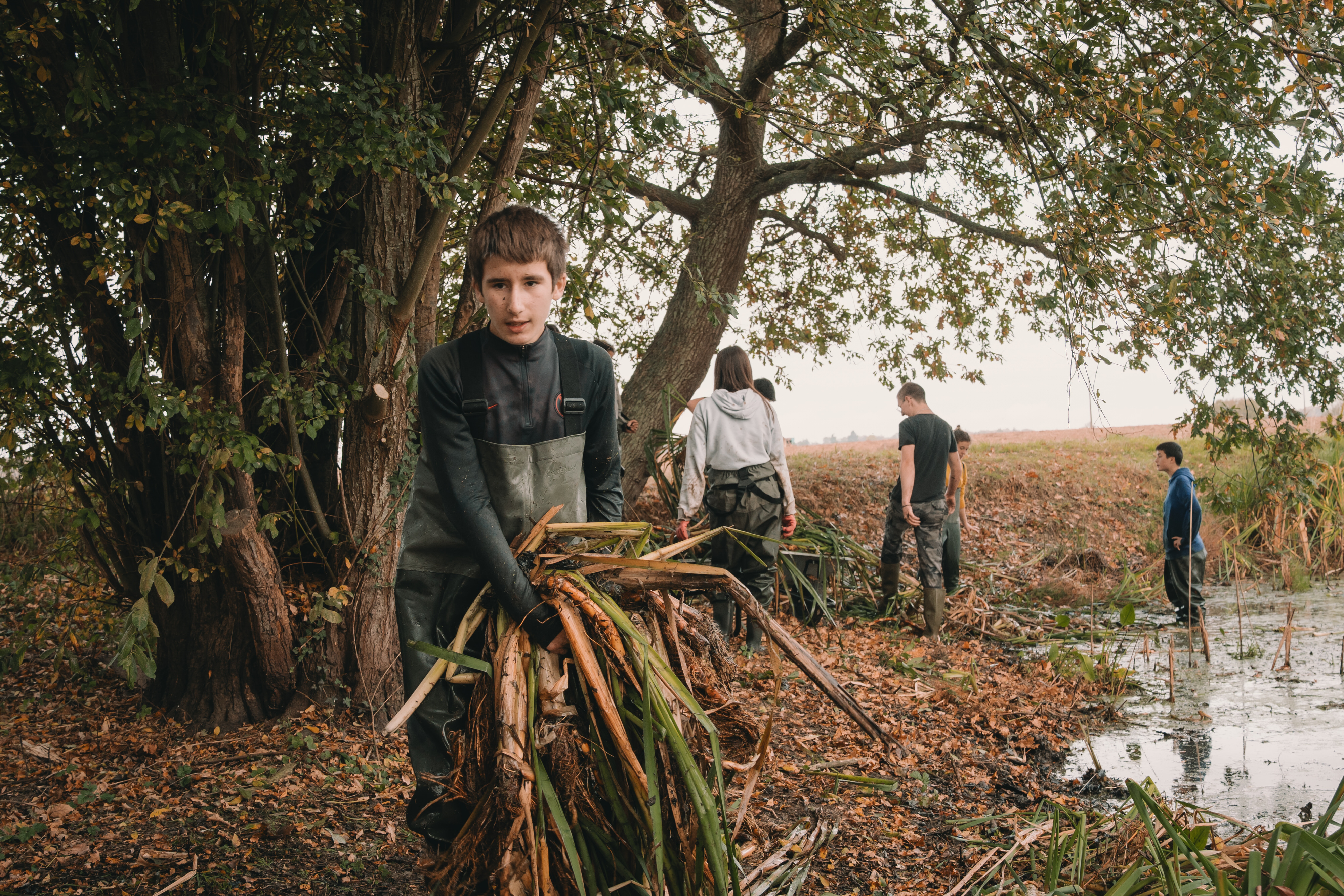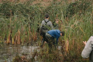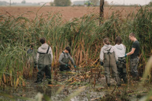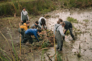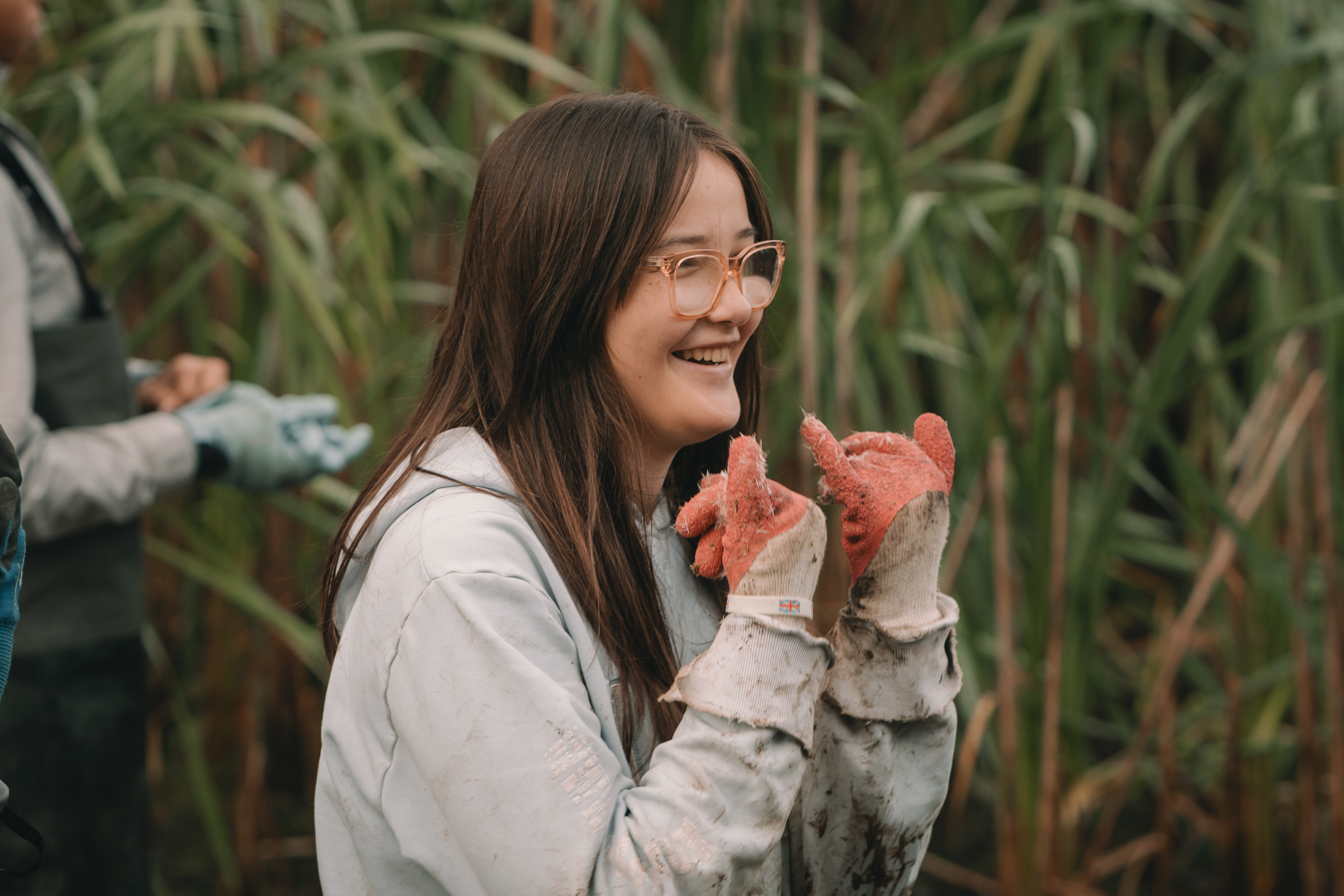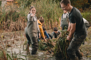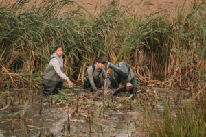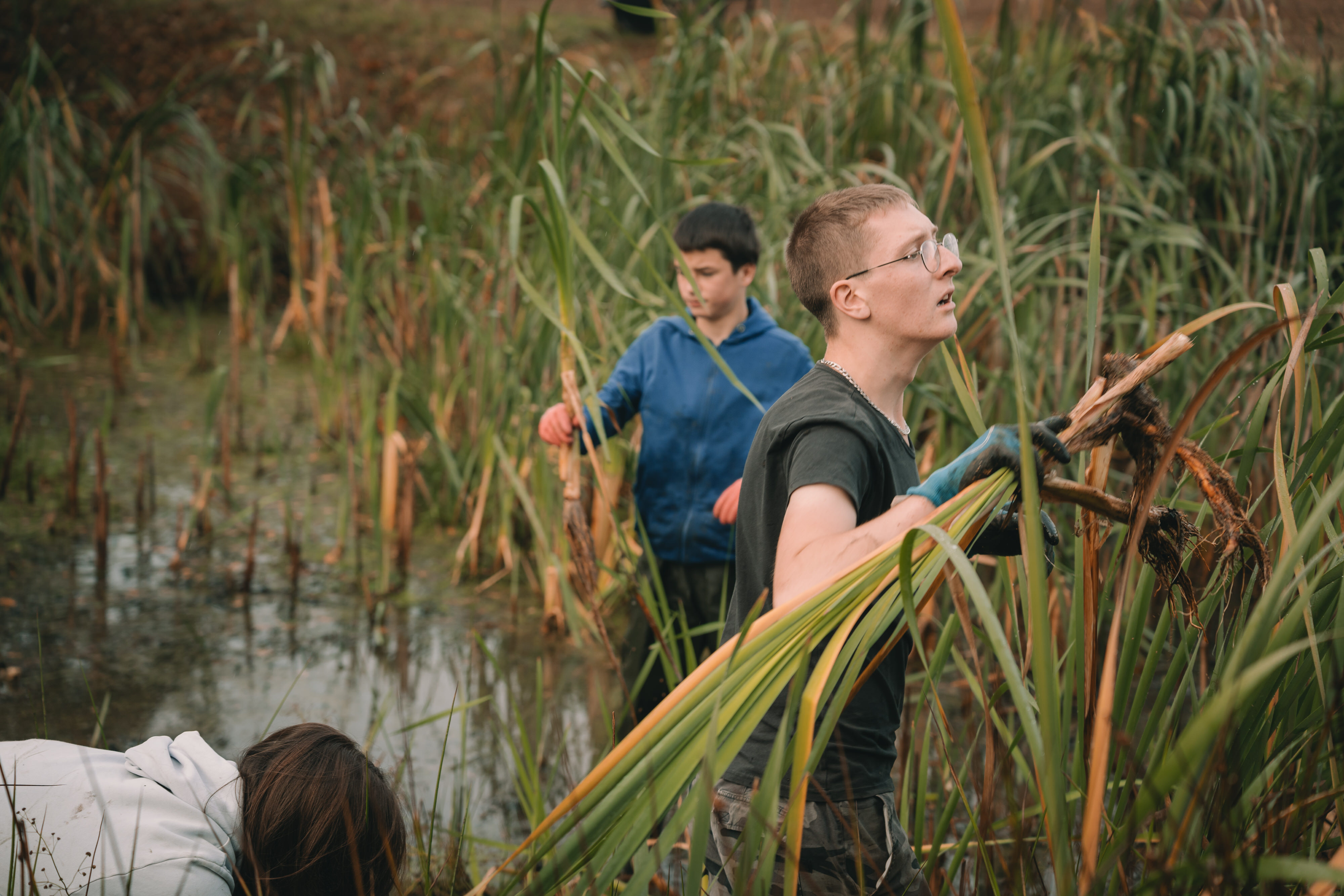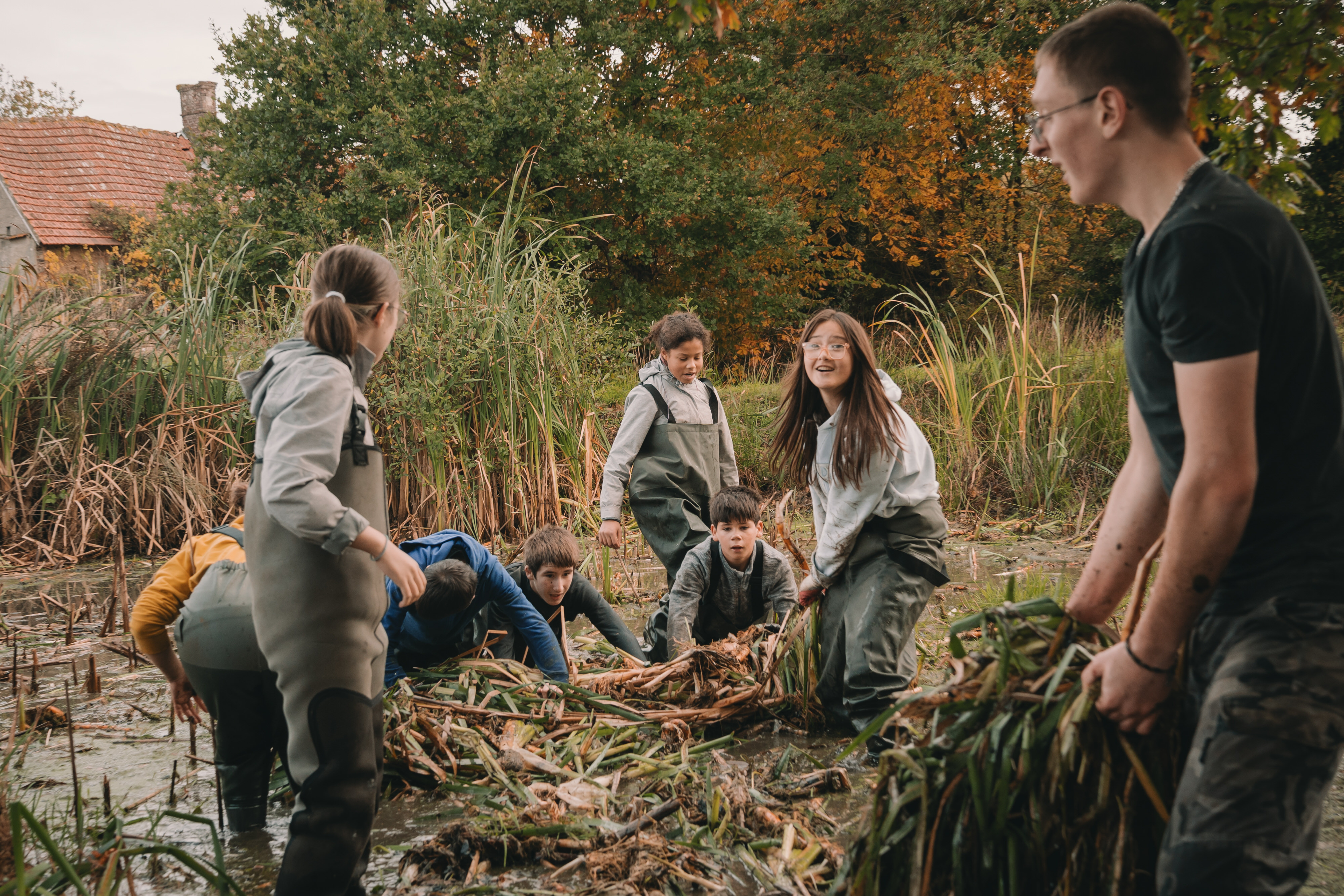 Arrachage de roseaux envahissants, pour redonner de l’espace aux autres espèces végétales ;