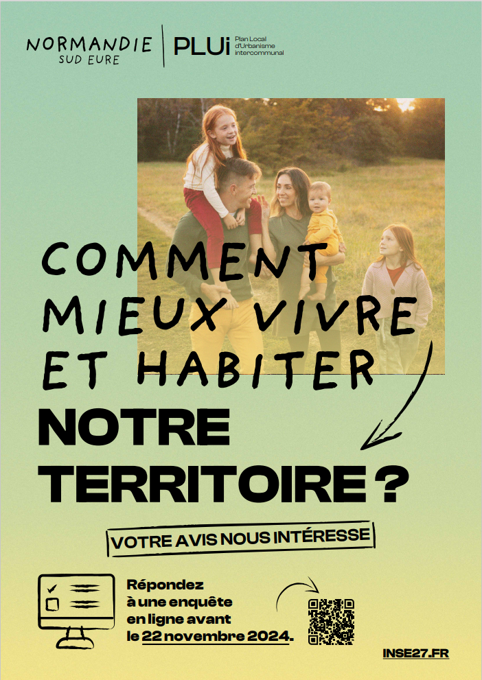 Participez à l'élaboration du futur Plan Local d'Urbanisme Intercommunal (PLUi) ! La communauté de communes Normandie Sud Eure lance une grande enquête en ligne pour recueillir l’avis des habitants et des actifs sur l’élaboration de son PLUi. A terme, ce document définira les règles d’urbanisme et le projet d’aménagement et de développement durables pour les 41 communes du territoire.