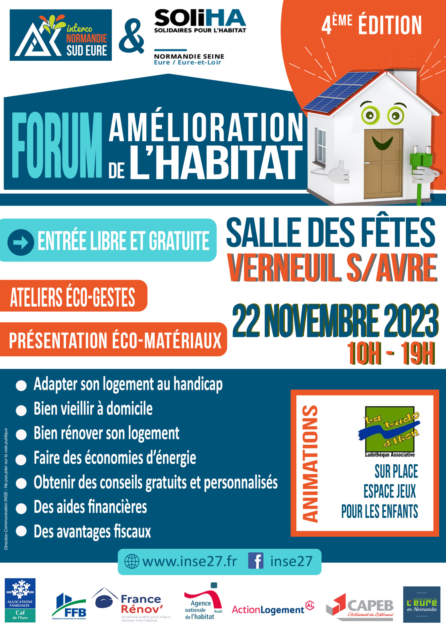 L’Interco Normandie Sud Eure organise son 4e Forum pour l’amélioration de l’habitat mercredi 22 novembre 2023 en partenariat avec l’association SOLIHA Normandie Seine. Ouvert à tous, le Forum se déroulera de 10 h à 19 h à la salle des fêtes de Verneuil-d’Avre-et-d’Iton.