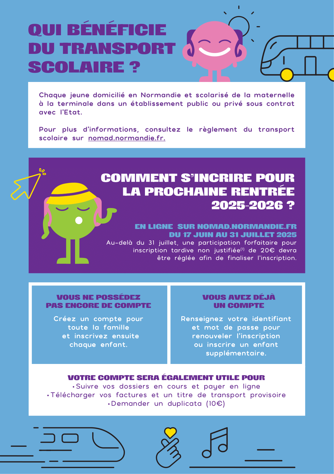 Les inscriptions pour le transport scolaire assuré par le réseau Nomad Normandie sont ouvertes pour l’année scolaire 2025-2026.