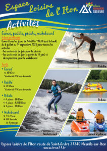 Canoë et paddle : tous les jours du 6 juillet au 1er septembre (fermé le lundi).