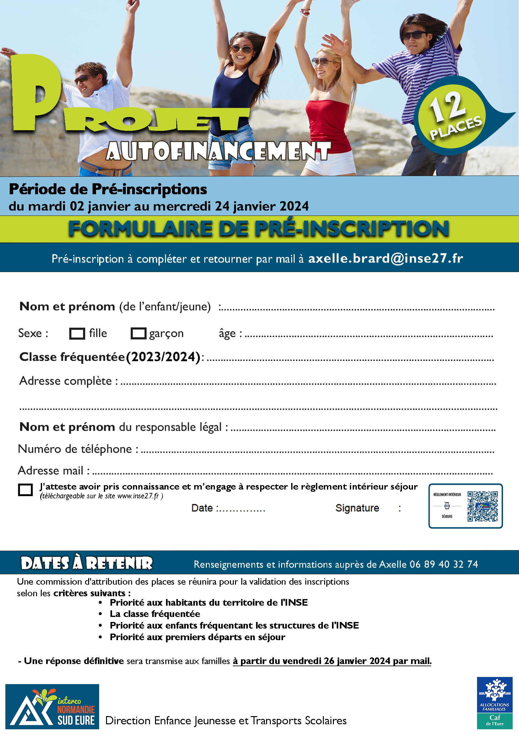 L'Interco Normandie Sud Eure propose aux jeunes de 13 à 17 ans de construire le séjour de leur rêve. Guidés par des animateurs, ils doivent organiser des actions afin d’autofinancer une grande partie du projet.