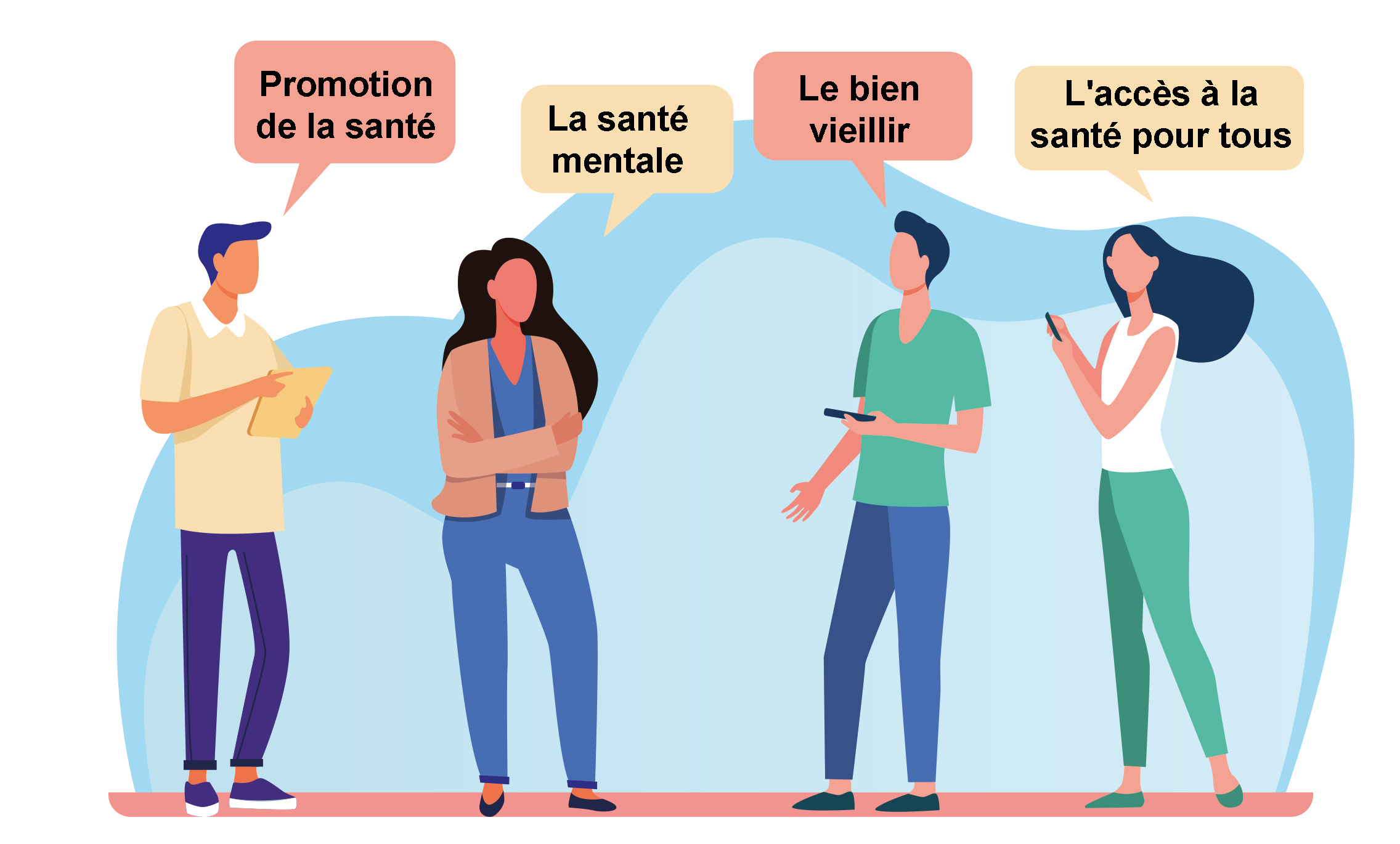 - La santé mentale, Un état de bien être peut permettre aux individus de se réaliser, comment faire face aux difficultés rencontrées, apporter leur contribution à la communauté, comment prendre soin de la santé mentale (burn out, prévention des conduites addictives, dépression, crise suicidaire, maladies mentales…) ?