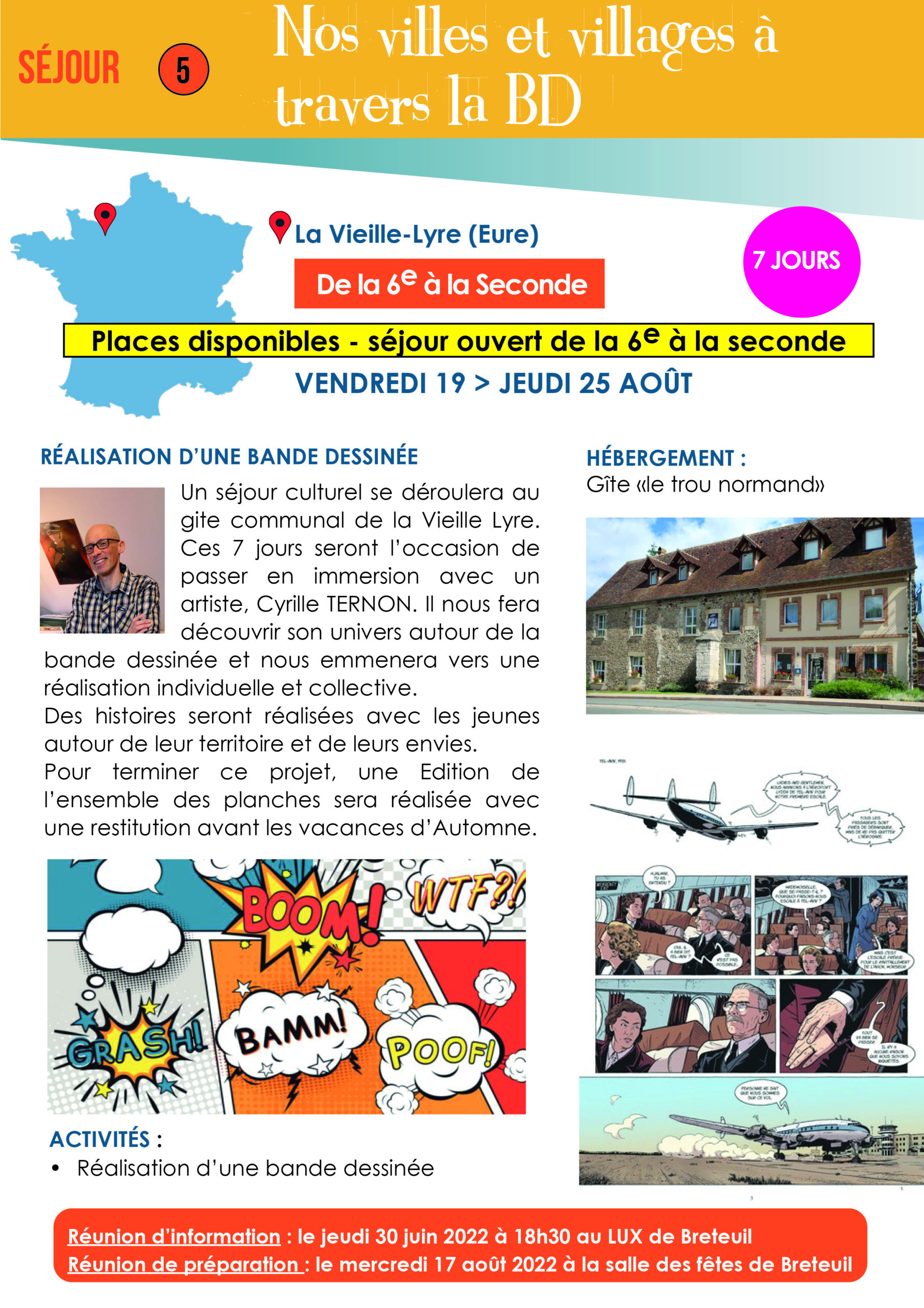 10 jeunes de la 6e à la seconde ont participé à un séjour à la Vieille-Lyre (au Gite du Trou Normand) organisé par l’Interco Normandie Sud Eure, dont l’activité principale était la réalisation d’une bande dessinée.