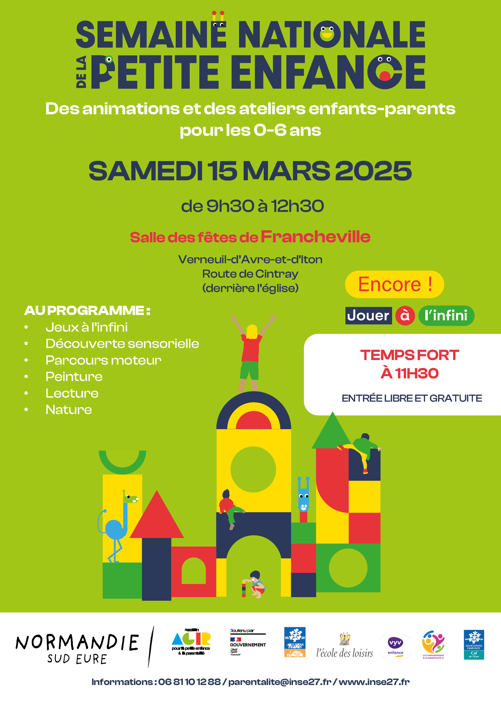 La Semaine Nationale de la Petite Enfance aura lieu du samedi 15 au vendredi 21 mars 2025 dans plusieurs communes de Normandie Sud Eure.