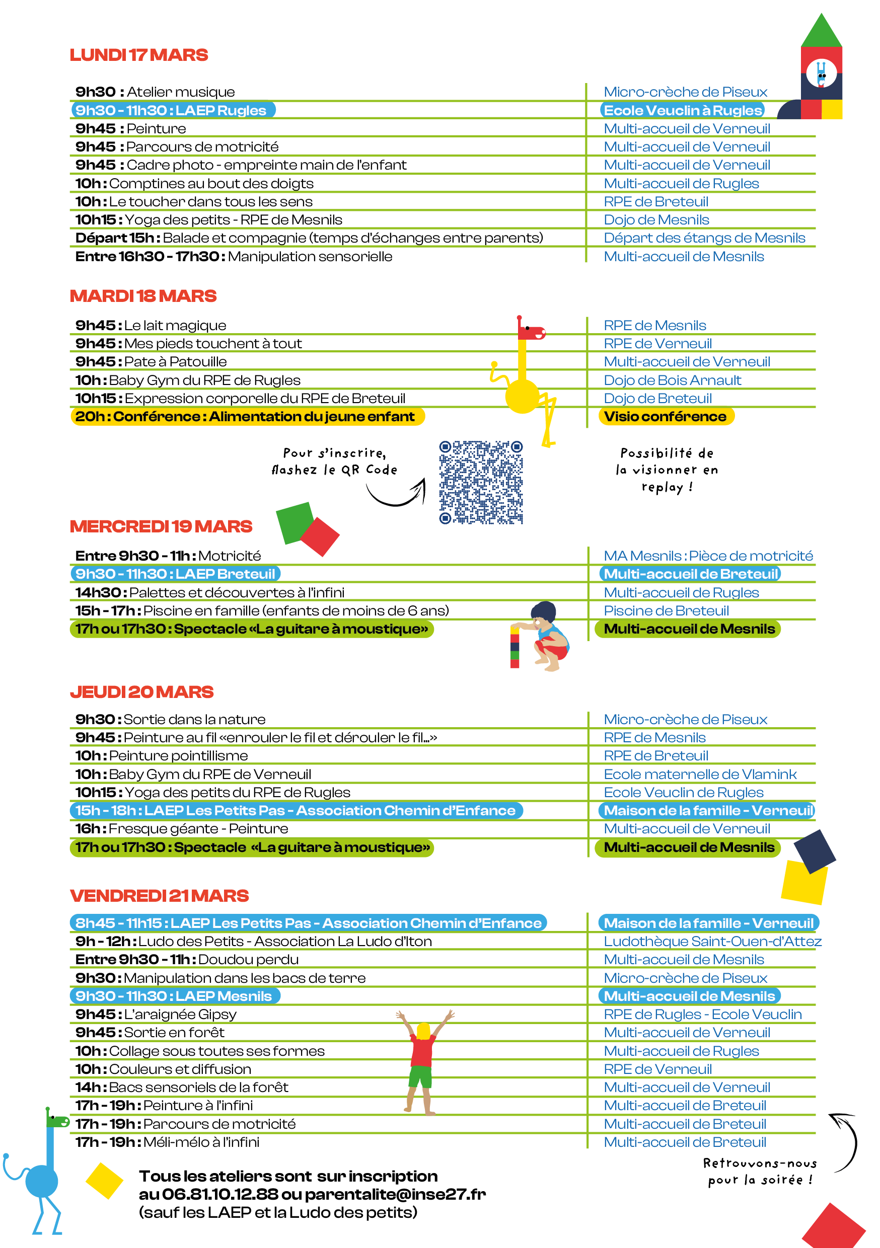 Inscription obligatoire (sauf à la Ludo d’Iton et dans les Lieux d’accueil Enfants-Parents) :